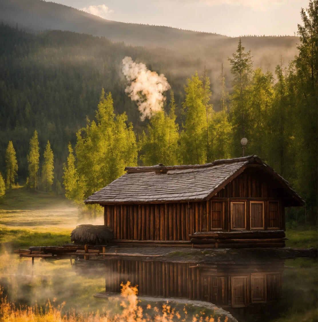 Парение проходит в можжевеловой бане — это целая церемония с ледяными контрастами и мыльно-лыковой помывкой, скрабом на ягодах можжевельника, меде и молотых алтайских травах, с витаминно-лимонной маской для тела